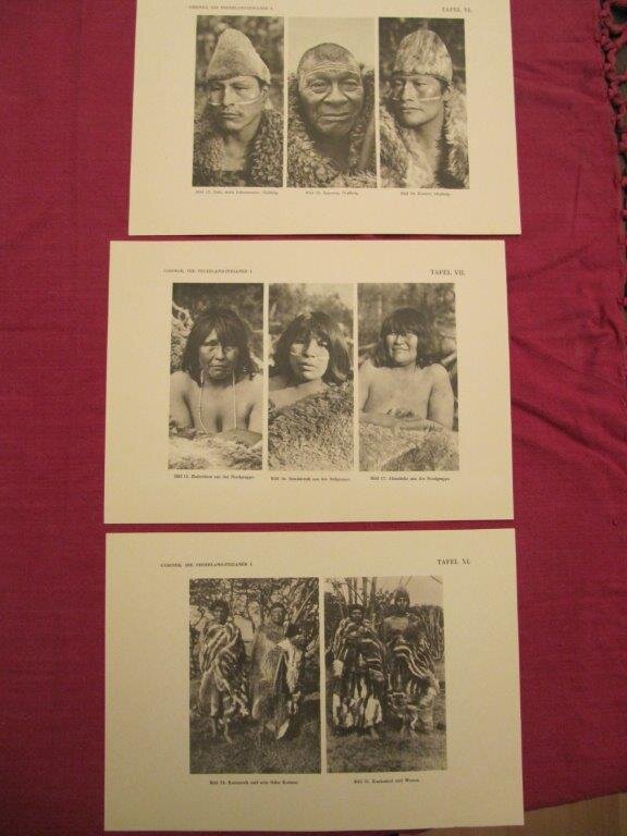 | Lahille, Fernand (o). Materiaux pour servir a L'Histoire des Oonas. Indigenes de la Terre de Feu. (Planches). Buenos Aires, Casa Editora 'CONI'. 1926. EA. Mit 6 (VI) großformatigen, doppelseitigen Tafeln auf starkem Karton mit je 2 oder mehr Fotografien. iv Textseiten (Erklärung der Tafeln) plus Tafeln. 4°. Universidad Nacional de la Plata. Museo. Supplemento del tomo XXIX de la Revista del Museo De La Plata. Neuer, hochwertiger HLdr.-Band mit eingebundenem OBr.-Deckel und -Rücken. Geringfügig stockfleckig, mit dem ExLibris von Kenn Back. Es handelt sich um das äußerst seltene Supplement zu dem gleichlautenden Artikel von Lahille im 'Revista …...Plata', Tomo XXIX, von 1926. Die beeindruckenden Fotografien doppelseitig auf starkem Karton. Im (hier nicht vorliegendem) Artikel dazu werden die dargestellten Personen vorgestellt mit Namen gefolgt von etlichen Seiten mit antropometrischen Messdaten. Bestellnummer: kai2108 Preis: 390 EUR Versandkonditionen |