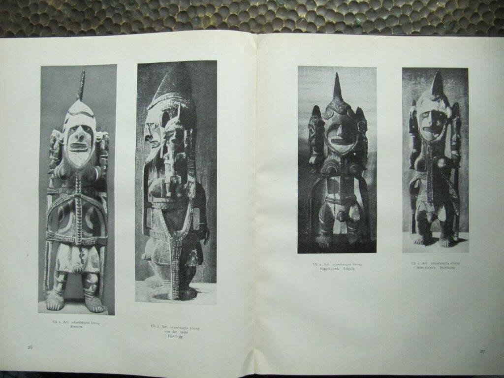Krämer, Prof. Dr. Augustin. Die Malanggane von Tombara. München, Georg Müller, 1925. EA. Mit sehr zahlreichen fotogr. Abb. auf 100 Tafeln sowie sehr zahlreichen Zeichnungen im Text. 91 S., (1), plus 100-seitiger Tafelteil. Gr. 4°. OGLn.-Band mit Deckel- und Rücken-Goldprägung. Kopffarbschnitt. Ausgezeichneter Zustand! Einige wenige Seiten mit geringfügigen Knickspuren, selten in so guter Erhaltung. Malanggane sind aus Holz geschnitzte, teils enorm große und aufwändig verzierte Kunstwerke aus Neu-Irland (früher Neu-Mecklenburg), einer der Hauptinseln des Bismarck-Archipels, gelegen vor der Nordostküste Papua-Neuguineas. Sie haben in der Kunstgeschichte Melanesiens einen ganz besonderen Stellenwert erlangt. - - Krämer arbeitet hier mit reichlich Verspätung die wissenschaftlichen Ergebnisse auf, die er als Teilnehmer und Leiter der 'Deutschen-Marine-Expedition 1907-1909 ' ansammelte. Wesentlich zu dieser Verzögerung trug sicher bei, dass er direkt im Anschluß die Leitung der wesentlich umfang- und ertragreicheren 'Hamburger-Südsee-Expedition' übernahm. - - Das wichtige Werk ist sehr selten geworden. Bestellnummer: kai2219 Preis: 940 EUR Versandkonditionen |