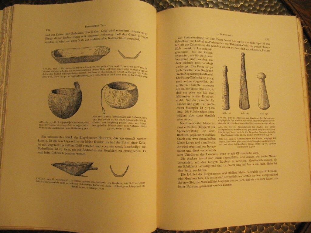 Finsch, Otto. Samoa-Fahrten / Ethnologischer Atlas zu Finsch Samoafahrten. Leipzig, F. Hirt & Sohn, 1888. EA. Bd. 'Samoa-Fahrten' mit 85 Abb.imText und auf Tafeln nach Originalskizzen von Dr.Finsch sowie 6 Karten ; Bd. 'Ethnologischer Atlas