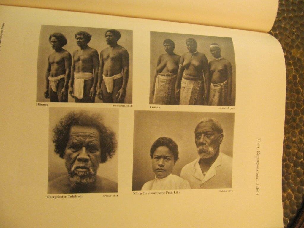 Schlaginhaufen, Otto. Zur Anthropologie der mikronesischen Inselgruppe Kapingamarangi (greenwich-Inseln) Zürich, Orell Füssli, 1929. EA. Mit 10 Tafeln mit fotograf. Abbildungen und einer Karte S. 219 - 287 plus Tafelteil. Gr. 8°. Separatabdruck aus: Archiv der Julius Klaus-Stiftung für Vererbungsforschung, Sozialanthropologie und Rassenhygiene (
