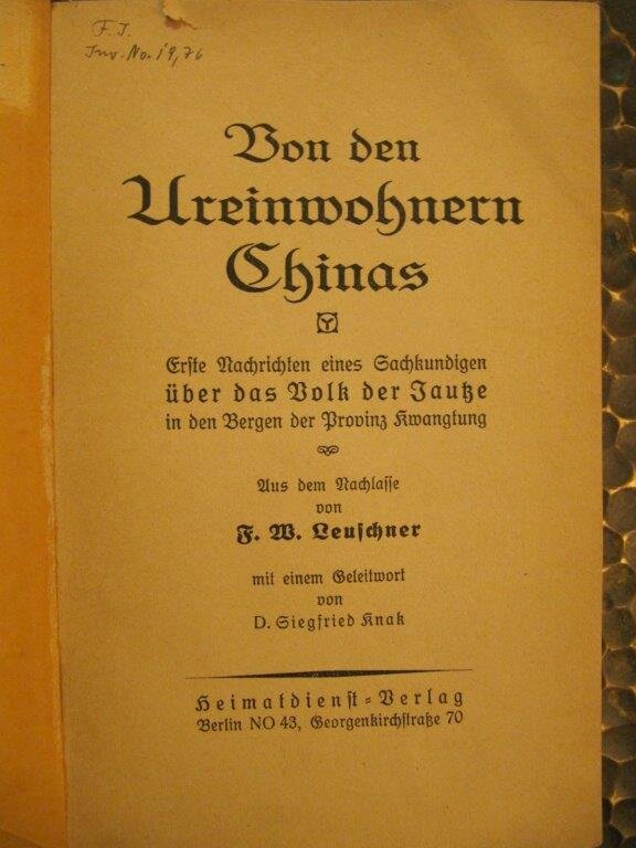Beauclair, Inez de. Tribal Cultures of Southwest China. Taipei, Formosa, The Oreintal Cultural Service, 1970. EA. Mit zahlreichen fotogr. Abb., Zeichnungen und einer Karte. 226 S. 8°. Asian Folklore and Social Life Monographs, Volume II. OGLn.-Band mit Rücken- und Deckelgoldprägung. Ausgezeichneter Zustand. Es handelt sich hier um eine Sammlung von 7 Artikeln aus verschiedenen Fach-Zeitschriften aus dem Zeitraum 1942 bis 1960. Inez de Beauclair war eine in Deutschland geborene Ethnologin und Anthropologin mit einer über 50 Jahre währenden Forschungs- und Publikationstätigkeit vorwiegend im Raume Südwestchina (Yünnan), Taiwan - Formosa und Südsee (u.a. Yap). Sie starb 1981 auf Taiwan. Bestellnummer: kai1583 Preis: 50 EUR Versandkonditionen |