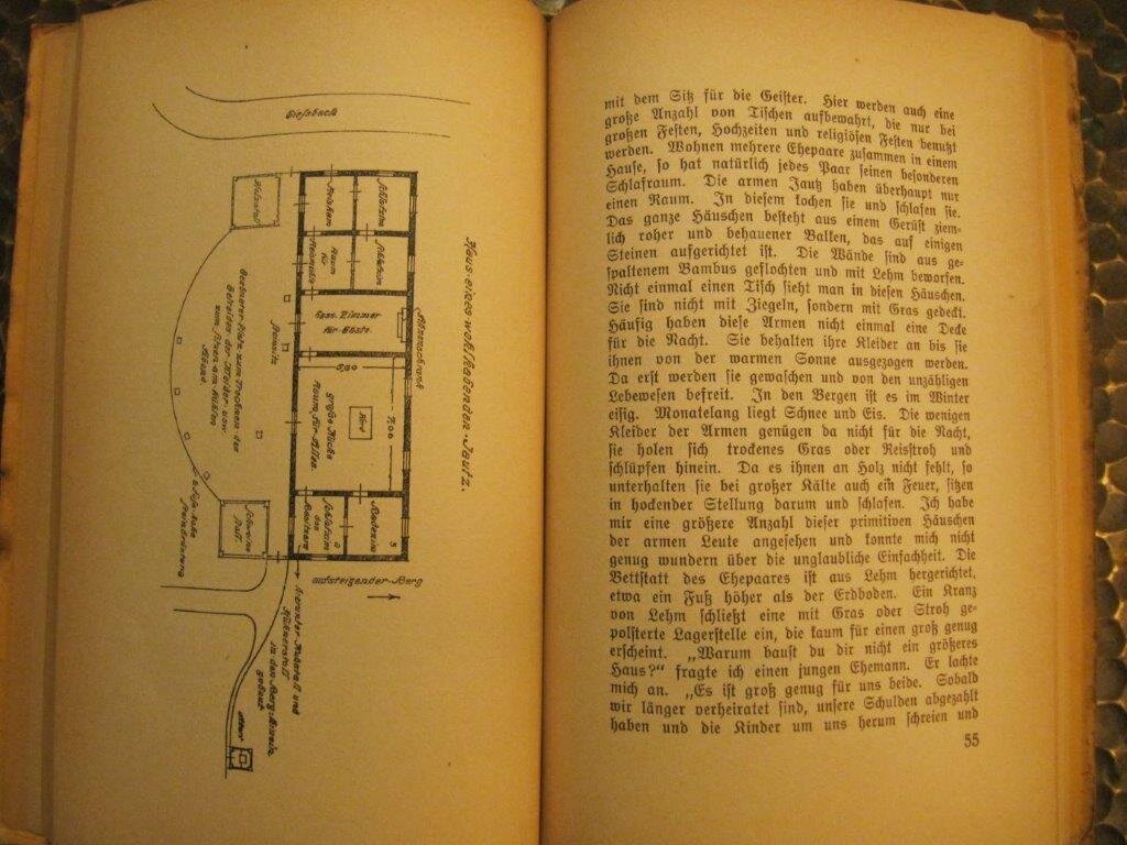 Torii, Ryuzo. Populations Primitives de la Mongolie Orientale. Etudes Archeologiques et Ethnologiques. Tokyo, Tokyo Imperial University, 1914. EA. Mit 75 Abb. im Text (überwiegend Fotografien , aber auch etliche Zeichnungen) sowie 13 Tafeln auf starkem Karton ( Fotografien, Farb-Lithografien, Zeichnungen und 1 Karte). 100 S. plus Tafelteil, alle Tafeln jeweils mit vorliegendem Blatt mit Erläuterungen. 4°. Journal of the College of Science, Tokyo Imperial University. Vol. XXXVI., Article 4. OBr. Es fehlt das vordere Umschlagblatt sowie Teile des Rückens, einige wenige Seiten teils leicht stockfleckig. Ansonsten ist das Buch in gutem Zustand, sauber, vollständig und fest in der Bindung. Wie alle Werke von Torii mit sehr zahlreichen Abb. auf Tafeln und im Text. Selten. Bestellnummer: kai1588 Preis: 179 EUR Versandkonditionen |
