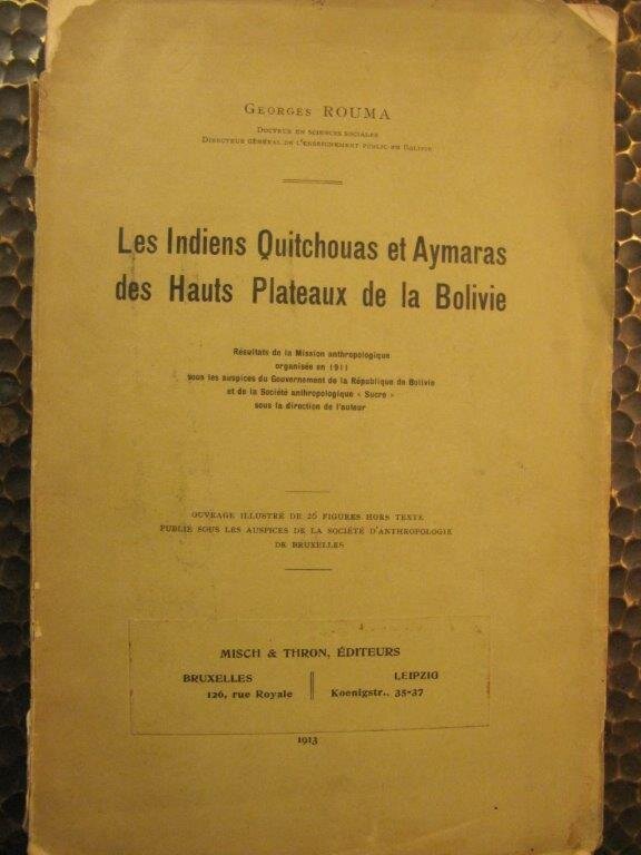 Aichel, Otto. Ergebnisse einer Forschungsreise nach Chile-Bolivien. Stuttgart, E.Schweizerbart'sche Verlagsbuchhandlung, 1932. EA. Mit zahlreichen Fotos und Zeichnungen im Text sowie weiteren 21 Foto-Tafeln (teils gefaltet) am Ende des Buches. 166 S. Gr. 8°. Beiträge zur Anthropologie Süd-Amerikas. Aus dem Anthropologischen Institut der Universität Kiel Softcover. Broschur-Umschlag mit kleineren Läsuren, innen sehr gut. Nicht im Buchhandel' - ' Überreicht vom Verfasser' Bestellnummer: kai2005 Preis: 40 EUR Versandkonditionen |