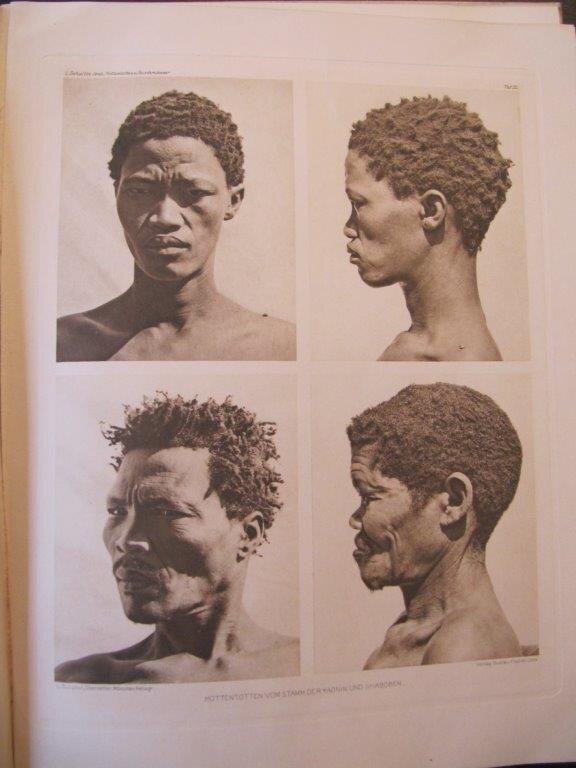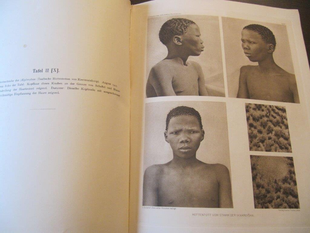 | Schultze Jena, leonhard. Zur Kenntnis des Körpers der Hottentotten und Buschmänner. Jena, Verlag v. Gustav Fischer, 1928. EA. Mit 18 großformatigen Tafeln auf starkem Karton mit zusammen 66 fotogr. Abb; weitere 16 Zeichnungen im Text sowie zahlreiche Tabellen und Kurventafeln. 83 S. (143 - 226) plus unpaginierter Tafelteil; die Tafeln jeweils mit vorliegendem Blatt mit Tafel-Erläuterungen. Folio-Format 35x27cm. Denkschriften der Medizinisch-Naturwissenschaftlichen Gesellschaft zu Jena, Band 17: Zoologische und Anthropologische Ergebnisse einer Forschungsreise im westlichen und zentralen Südafrika, ausgeführt in den Jahren 1903-1905. Fünfter Band - Systematik, Tiergeographie und Anthropologie. Dritte Lieferung. HLn.-Band. Eine Seite mit hinterlegtem Riss, St.a.T., sonst ausgezeichneter Zustand, sauber , vollständig. Alle Tafeln vorhanden, was oft nicht der Fall ist. Um mal mit was Gutem anzufangen: Schultze-Jena war einer der letzten großen Universal-Gelehrten, die umfangreiche, ausgezeichnet recherchierte und ausgestattete, oft vielbändige Werke zur Anthropologie, Ethnologie, Zoologie und Botanik, Linguistik etc. vorlegten, vergleichbar z.B. mit den Werken der beiden Sarasins, die ungefähr zur gleichen Zeit forschten und lehrten. -- Aber, aber:.... Auf Grund der großformatigen, gestochen scharfen Darstellung der unbekleideten Körper der dargestellten Personen (einschließlich der Steatopygie und der sog. Hottentotten-Schürze), kamen diese Bücher Schultze-Jenas in der Regel nicht in die öffentliche Ausleihe der Bibliotheken, sondern gehörten zum Präsenzbestand oder standen nur für die wissenschaftliche Arbeit zur Verfügung. Es ist hier nicht nur der entwürdigende Charakter der anthropometrischen Fotografie anzumerken und zu hinterfragen, sondern der ganze Entstehungskontext mit schrecklich klarem Machtgefälle stößt heute zu Recht eine neue Diskussion um Präsentation und Zeigbarkeit von Text und Fotos an. Wie sich etwas allgemeiner der Wert dieses vermessungs-wütigen Buches überhaupt ganz grundsätzlich in Frage stellen läßt, spricht man doch heute eher von der Zeit der 'Erfindung von Menschenrassen' ! In speziell diesem Fall muss weiterhin darauf hingewiesen werden, dass sich fast am gleichen Orte fast zeitgleich der Völkermord an den Herero und Nama ereignete. Weiß man etwas darüber, was Schultze-Jena davon wußte? Ja, weiß man: Viele seiner Fotografien zeigen Menschen, die schon kurz darauf in welcher Form auch immer Opfer eines Völkermordes wurden. Schultze-Jena hatte Zugang zu und 'arbeitete' mit und an Körpern (Leichen) von Ermordeten. Ein Umstand, der selbst über 20 Jahre später in diesem seinem Werk 'Zur Kenntnis des Körpers der Hottentotten und Buschmänner' aus dem Jahre 1928 nicht thematisiert wird. Bei aller Hinwendung und Nähe des Antiquars zu ethnologischen Fragestellungen und Darstellungen stellt sich hier die Frage, ob 'so ein Buch' heute überhaupt noch 'einfach so' in den Verkauf kommen darf. Was macht 'man' heute mit all dem aktuellen Wissen über die grausamen rassistischen Entstehungs-Zusammenhänge solcher und ähnlicher Literatur mit diesen Büchern? (Der KAIAPO-Antiquar ist dankbar über gute Ideen dazu). - Auch unabhängig vom Völkermord ist der rassentheoretische Aspekt und Hintergrund dieses Werkes heute aus fast weltweit anerkannter wissenschaftlicher Sicht nur noch als vollkommen gescheitert zu bezeichnen. Aus all diesen Gründen gebe ich das Buch weit unter Selbstkostenpreis ab. Bestellnummer: kai2322 Preis: 100 EUR Versandkonditionen |