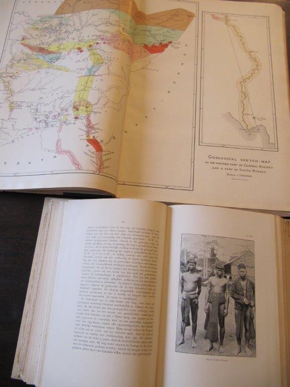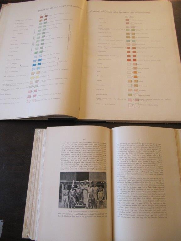 | Veth / Cornelissen / Hasselt / Snelleman. Midden - Sumatra. Reizen en Onder zoekingen der Sumatra-Expeditie, uitgerust door het aardrijkskundig Genootschap, 1877-1879, beschreven door de Leden der Expeditie, onder Toezicht van Prof. P.J.Veth. 4 Bände in 7 plus Atlasband, so vollständig (abgesehen von dem 1 Jahr früher (1879) erschienenem Photographie-Album von Veth, welches extrem selten und teuer ist). Die Bezeichnungen der einzelnen Bände im Niederländischen lauten: Eerste Deel, 'Reisverhaal', Eerste und Tweede Gedeelte / Tweede Deel, 'Aardrijkskundige Beschrijving' (Ein Teil davon ist der 'Atlas') / Derde Deel, 'Volksbeschrijving Leiden, Brill, 1881 - 1892. EA. Die 4 Textbände mit mehreren Frontis und zusammen 189 weiteren Tafeln (Holzschnitt, Zeichnungen sowie überwiegend ChromoLithographien, viele nach Photogr. von Veth); weiterhin eine große, mehrf. gef. Farbkarte und zwei mehrf. gef. Stammbaum-Karten. Der Atlasband mit 16 gefalteten Karten im Format 46x60,5cm. Zusammen 2329 S. plus sehr zahlreiche mit röm. Ziffern paginierte Vorreden, Inhaltsangaben o.ä. sowie die unpag. Tafeln. Die 4 Text-Bände (in 7) sind 4°, der Atlasband Fo Alle Teilbände ausser dem Tweede Gedeelte vom Deerde Deel ( De Talen en Letterkunde) sowie dem Atlas sind dekorative Halblederbände mit Lederecken und Rücken-Goldprägung. Der 'Talen en Letterkunde'-Band sowie der Atlas sind Halbleinenbände mit den Original-Pappdeckeln. Die Bände 1, 2 und 4 habe jeweils einige kleine Wurmlöcher und -gänge in den Deckeln, die sich teils noch in einige der Textseiten hineinziehen; einige Tafeln sind lose, die große Faltkarte mit einem hinterlegten Riss von ca. 11cm Länge , ansonsten ordentlicher, sauberer Zustand, keine Bibl.-Exple. / Die beiden HLdr.-Bände vom 3.Band, Eerste und tweede Afdeeling sind Bibl.-Exple mit Resten der Signaturen am unteren Rücken und auf der Deckel-Innenseite, sowie je einem kleinen Stempel auf der Titelsseite; beide Lederrücken oben mit dunklen Flecken und jeweils einer kleinen (wenige mm) bzw. etwas größeren (3x2cm) Fehlstelle. Ansonsten beide Bände von innen sehr gut. / Die beiden HLn.-Bände (inkl. Atlas) in guter bis sehr guter Erhaltung, lediglich die Deckel des Atlasbandes berieben, leicht bestoßen, teils etwas schmutzig und mit kleinen Fehlstellen. - - - Insgesamt die komplette Reihe in ordentlichem Zustand. Dieses umfangreiche Werk sehr selten vollständig angeboten, vor allem der Atlasband und der 'Ethnographische Atlas' von Hasselt (Teil von Bd. 3) mit alleine 128 ausgezeichneten Tafeln sind sehr selten. Bestellnummer: kai1752 Preis: 890 EUR Versandkonditionen |