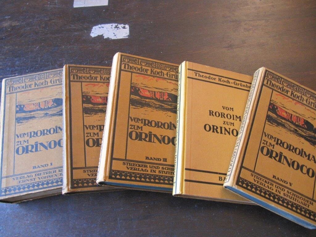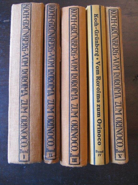 | Thorbecke, Franz und Marie Pauline. Im Hochland von Mittel-Kamerun. 4 Bände (in 5 Teilen= 1./2./3. und 4.erste und zweite Hälfte) . Hamburg, Friederichsen / Cram, deGruyter, 1914/ 1916/ 1919/ 1924/ 1951. EA. Mit zusammen 111 Tafeln, 4 Farbtafeln,5 gefalteten Karten, 77 Textabbildungen und 10 Tafel mit Musikbeispielen. Band 1: Die Reise: Eindrücke und Beobachtungen. Mit 75 Abbildungen auf 50 Tafeln, 1 Farbtafel und 1 Karte. XII/101 Seiten.- Band 2: Anthropogeographie des Ost-Mbamlandes. Mit 37 Abbildungen auf 26 Tafeln und 2 Karten. X/94 Seiten. - Band 3: Beiträge zur Völkerkunde des Ost-Mbamlandes. Mit 3 Farbentafeln, 141 Abbildungen auf 35 Tafeln, 32 Textfiguren, 2 Tabellen, 23 Transkriptionen und 1 Tafel Tonleitern. XII, 178, 20 Seiten.- Band 4/1: Die Karte des Ost-Mbamlandes nach den Aufnahmen der Expedition.16 Seiten Text und große Faltkarte. - Band 4/2: Physische Geographie des Ost-Mbamlandes. Mit 45 Abbildungen im Text und einer Karte mit geologischen Signaturen. X/294 Seiten. 4°. 1. , 2. und 3. Teil: Abhandlungen des Hamburgischen Kolonialinstituts, Bde. XXI, XXXVI u. XXXXI. (Reihe C. Geographie, Geologie, Mineralogie und Paläontologie, Bde. 1,5 u. 7.). 4.Teil, 1. Hälfte ohne Zuordnung. 4.Teil, 2. Hälfte: Universität Hamburg, Abhandlungen aus dem Gebiet der Auslandskunde. Band 55 - Reihe C. Naturwissenschaften Band 15 . Alle 4 umfangreichen Text- Teilbände unbeschnittene Original-Broschurbände; nur der dünne Kartenband (4.Teil, 1.Hälfte) ist beschnitten. Nur der dünne Kartenband mit Gebrauchsspuren, 2 kleinen Stempeln sowie einer Widmung von Franz Thorbecke. Die 4 Hauptbände in hervorragendem, frischem Zustand, keine Bibl.-Exemplare. Sehr selten vollständig angeboten. Vor allem der meist fehlende zweite Teil des vierten Bandes, der von Thorbeckes Frau herausgegeben wurde, ist hier mit vorhanden. Eine Rarität in ausgezeichnetem Zustand! Bestellnummer: kai1739 Preis: 440 EUR Versandkonditionen |