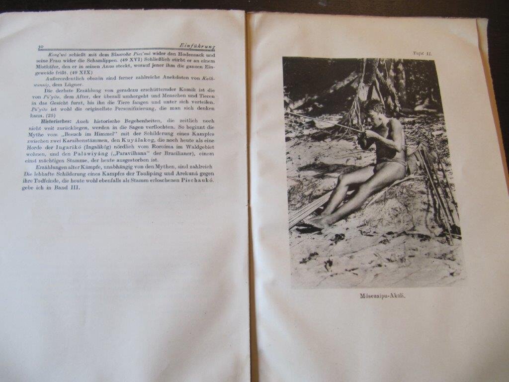| Wavrin, Marquis de. Les Derniers Indiens Primitifs Du Bassin du Paraguay. 2 Bände. Paris, Librairie Larose, 1926. EA. Band 1 (Textband) mit zahlreichen Zeichnungen, teils ganzseitig, und einer Karte; Band 2 (Tafelband) mit sehr zahlreichen Fotografien in s/w auf 44 Fototafel-Seiten (Tafel 24 irrtümlich mit 21 bezeichnet). 107 S. / 44 Fototafel-Seiten. 4°. OPpBde. Einbände teils gering fleckig und mit kleinen Einrissen; Innen teils etwas knitterig, sonst sehr gut. Dieses einzige frühe Werk des Marquis mit wissenschaftlichem Anspruch ist äußerst selten. Gedruckt auf Kunstdruckpapier ist es mit zahlreichen sehr guten Fotografien ausgestattet. Bestellnummer: kai0952 Preis: 150 EUR Versandkonditionen |