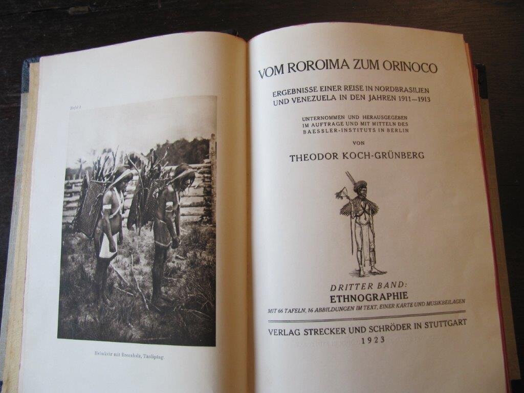 | Ulrich, Dr. Otto Willi. 1):Im Lande der Affen und Papageie (sic!). Reiseerinnerungen an Sued-Amerika, Brasilien, Paraguay und Argentinien, mit vielen Photographischen Aufnahmen und einer Karte von Sued-Amerika. / 2): Nos Sertoes do Rio Paraguay. Impressoes de Viagem da Expedicao Ulrich ao "Hinterland" Brasileiro-Boliviano. / 3): Indianer.Die Geschichte einer großen Nation. N.Y. / Sao Paolo./ Rio de Janeiro. Geogr. Publishing Co. / J. Fagundes. / Casa Editora de Obras Scientificas Ltda. 1930./ 1937./ 1938. EA. Mit zusammen ca. 200 fotogr.Abb. auf Tafeln sowie sehr zahlreichen Zeichnungen und Karten. 262 S. / 111 S. / 218 S. + umfangreicher Tafelteil. 8°., 8°, Gr. 8°. OGLn.-Band mit Rücken- und Deckel-Goldprägung. / Neuerer PpBd. mit Rücken-Goldprägung und eingeb. OBroschur. / Illustr. OPpBd. Im Lande….' mit leicht bestoßenen Deckeln und sehr gering ausgefransten Kapitalen,ansonsen sehrt gut. / 'Nos Sertoes……' neu eingebunden mit neuen Vorsätzen. Die ersten und letzten Seiten teils etwas fleckig oder feuchtigkeitsrandig; Ein Kommentar mit Bleistift auf Seite 47 - ansonsten gut. / 'Indianer.....' mit stabilisiertem Rücken sowie hier und da etwas stockfleckig; vollständig und fest in der Bindung.- - -Alle drei Bücher vollständig in ordentlichem Zustand. Wer war Dr. Otto Willi Ulrich? Mit diesen drei Büchern liegt alles von diesem deutsch-brasilianischem Abenteurer Veröffentlichte vor. Im ersterschienenen 'Im Lande der Affen und Papageie' wird reichlich gesoffen und es wird auch mal ungerührt eine 'Bande' von über 40 Indianern mit Frauen und Kindern unter munterer Beteiligung des Autors ausgelöscht (S. 59). Das extrem seltene ' Nos Sertoes do Rio Paraguay' berichtet von der 'Ulrich-Expedition' , die immerhin 25.000 km durch weite Teile Brasiliens (Amazonas, Matto Grosso, Minas Gerais, Bahia, Pernambuco etc....) sowie Boliviens und Paraguays führte, andererseits aber mit keinem Sterbenswörtchen in irgendeiner dem Antiquar bekannten wissenschaftl. Publikation je erwähnt wurde. Das dritte Werk, 'Indianer. Die Geschichte einer großen Nation' , überrascht dann mit einem überwiegend historisch-ethnologisch orientiertem und durchaus detailreichem Überblick über viele Indianervölker Nord-und Südamerikas; mittendrin ein guter und umfangreicher Bilder- und Kartenteil, der sich ausschließlich aus der 'Ulrich-Expedition' speist, jedoch in keinerlei Bezug zum Textteil steht. Das Vorwort offenbart dann eine - für die Zeit, 1938, - wohl noch sehr typische Art von verdächtiger Indianer- Romantik: "Hat die christliche Eroberung Amerikas überhaupt noch Menschen jener stolzen, wenn auch primitiven Rasse übrig gelassen? ..... Das freiheitsliebende deutsche Volk hat immer Sympathien für die Indianer gehegt". Alles in Allem bleibt verstärkt die Frage: Wer war dieser Dr. Ulrich? Nach wie vor dankbar für (weitere) Hinweise: Der Antiquar. ACHTUNG: Es handelt sich hier nicht um ein 3bändiges Werk, sondern um 3 unabhängig voneinander erschienene Bücher, wahrscheinlich alles, was es von diesem Autor gibt. Bestellnummer: kai2311 Preis: 290 EUR Versandkonditionen |