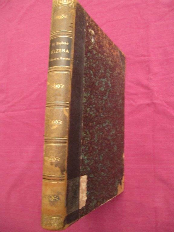 | Rehse, Hermann. Kiziba. Land und Leute. Eine Monographie. Stuttgart, Strecker&Schröder, 1910. EA. Mit Frontispiez (Lichtdrucktafel), 131 Abb. im Text (Fotos und Zeichnungen) sowie einer ganzseitigen Karte. XI, 1 Bl. (Karte), 394 S. 4°. Mit einem Vorwort von Prof. Dr. v. Luschan. Herausgegeben mit Unterstützung des Reichs-Kolonialamts. OHLdr.-Band mit marmorierten Deckeln, Lederecken und Rotschnitt. Das Leder und die Deckel-Kanten berieben, teils mit Fehlstellen, ebenso die marmorierten Deckel. Einige wenige Bibl.-Stempel, Seidenpapier nach Frontispiez etwas stockfleckig. Ansonsten neuwertiger, frischer Zustand, absolut sauber, ohne Gebrauchsspuren, vollständig, fest in der Bindung. Ein seltenes völkerkundl. Werk mit hervorragenden Abbildungen in ebensolchem Zustand. Bestellnummer: kai2269 Preis: 110 EUR Versandkonditionen |
