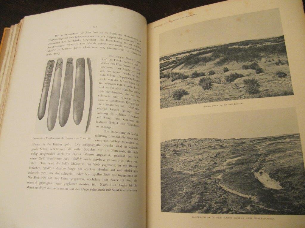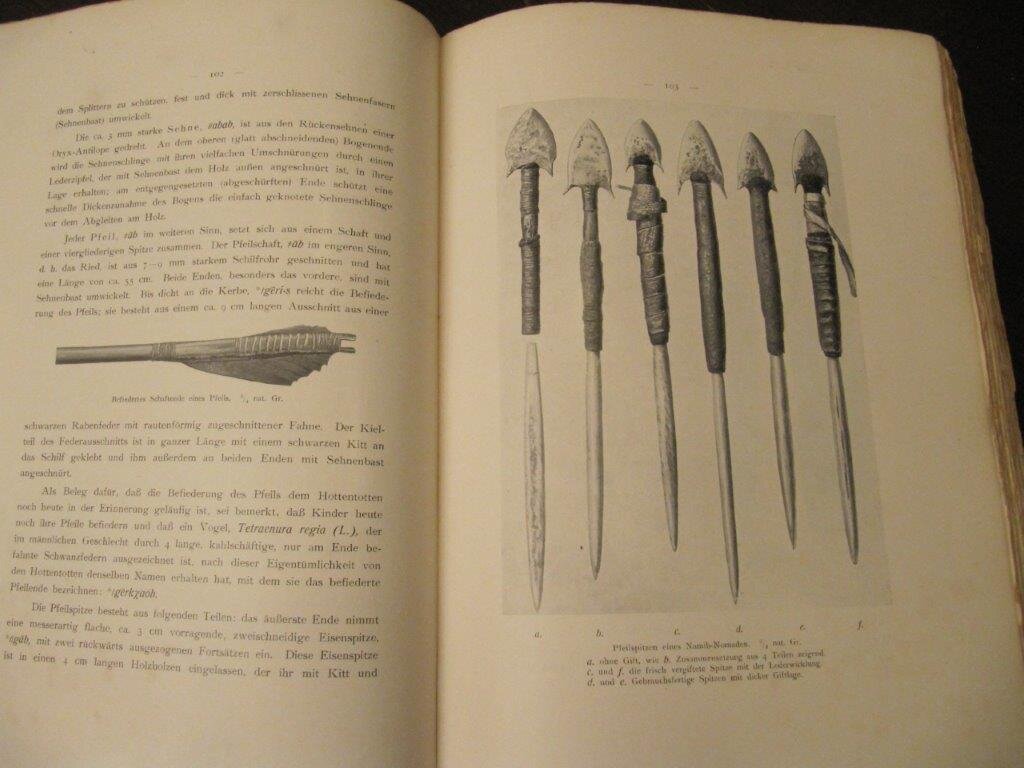 | Werther, C. Waldemar. Die mittleren Hochländer des nördlichen Deutsch-Ost-Afrika. Wissenschaftliche Ergebnisse der Irangi-Expedition 1896-1897 nebst kurzer Reisebeschreibung. Berlin, Verlag H. Paetel, 1898. EA. Mit 5 Vollbildern (= Tafeln mit fotogr. Abb. bzw. Zeichnungen) und 126 Text-Illustrationen in Photogravüre, Lichtdruck, Lithographie und Autotypie sowie 2 großen, mehrfach gefalteten Farbkarten ( 52x42cm / 75x55cm). 493 S., 2 Bl. 4°. GLn.-Band mit Rücken-Goldprägung Bibl.-Expl. mit lediglich einem Stempel auf dem Titelblatt und einem weiteren auf Seite 65 unten, keine weiteren Bibl.-Merkmale und auch keinerlei Gebrauchsspuren, lediglich einige eher winzige Einrisse des sehr brüchigen Papier im Vortitel und auf den letzten zwei Seiten. Ansonsten Tadelloser Zustand des neu eingebundenen Werkes. Aus heutiger Dekolonialisierungs-Sicht schon des öfteren sehr harter Tobak - -gepaart mit einer enormen Fülle detaillierter wissenschaftlicher Beobachtungen. Bestellnummer: kai1610 Preis: 40 EUR Versandkonditionen |