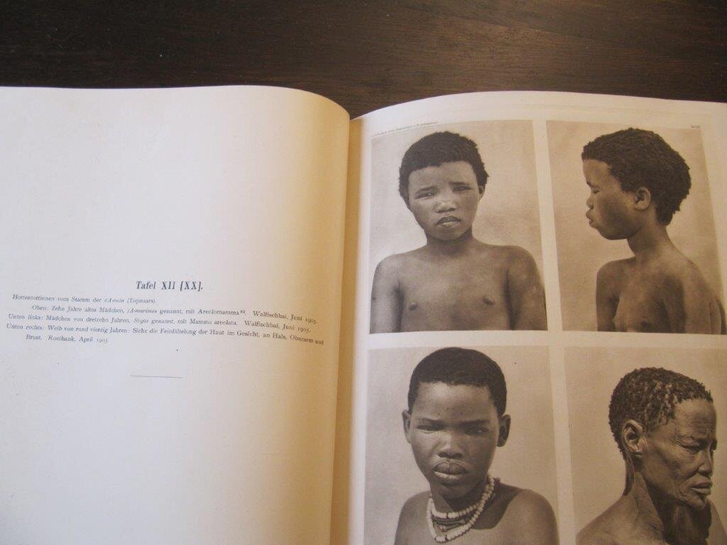 | Schultze Jena, leonhard. Zur Kenntnis des Körpers der Hottentotten und Buschmänner. Jena, Verlag v. Gustav Fischer, 1928. EA. Mit 18 großformatigen Tafeln auf starkem Karton mit zusammen 66 fotogr. Abb; weitere 16 Zeichnungen im Text sowie zahlreiche Tabellen und Kurventafeln. 83 S. (143 - 226) plus unpaginierter Tafelteil; die Tafeln jeweils mit vorliegendem Blatt mit Tafel-Erläuterungen. Folio-Format 35x27cm. Denkschriften der Medizinisch-Naturwissenschaftlichen Gesellschaft zu Jena, Band 17: Zoologische und Anthropologische Ergebnisse einer Forschungsreise im westlichen und zentralen Südafrika, ausgeführt in den Jahren 1903-1905. Fünfter Band - Systematik, Tiergeographie und Anthropologie. Dritte Lieferung. HLn.-Band. Eine Seite mit hinterlegtem Riss, St.a.T., sonst ausgezeichneter Zustand, sauber , vollständig. Alle Tafeln vorhanden, was oft nicht der Fall ist. Um mal mit was Gutem anzufangen: Schultze-Jena war einer der letzten großen Universal-Gelehrten, die umfangreiche, ausgezeichnet recherchierte und ausgestattete, oft vielbändige Werke zur Anthropologie, Ethnologie, Zoologie und Botanik, Linguistik etc. vorlegten, vergleichbar z.B. mit den Werken der beiden Sarasins, die ungefähr zur gleichen Zeit forschten und lehrten. -- Aber, aber:.... Auf Grund der großformatigen, gestochen scharfen Darstellung der unbekleideten Körper der dargestellten Personen (einschließlich der Steatopygie und der sog. Hottentotten-Schürze), kamen diese Bücher Schultze-Jenas in der Regel nicht in die öffentliche Ausleihe der Bibliotheken, sondern gehörten zum Präsenzbestand oder standen nur für die wissenschaftliche Arbeit zur Verfügung. Es ist hier nicht nur der entwürdigende Charakter der anthropometrischen Fotografie anzumerken und zu hinterfragen, sondern der ganze Entstehungskontext mit schrecklich klarem Machtgefälle stößt heute zu Recht eine neue Diskussion um Präsentation und Zeigbarkeit von Text und Fotos an. Wie sich etwas allgemeiner der Wert dieses vermessungs-wütigen Buches überhaupt ganz grundsätzlich in Frage stellen läßt, spricht man doch heute eher von der Zeit der 'Erfindung von Menschenrassen' ! In speziell diesem Fall muss weiterhin darauf hingewiesen werden, dass sich fast am gleichen Orte fast zeitgleich der Völkermord an den Herero und Nama ereignete. Weiß man etwas darüber, was Schultze-Jena davon wußte? Ja, weiß man: Viele seiner Fotografien zeigen Menschen, die schon kurz darauf in welcher Form auch immer Opfer eines Völkermordes wurden. Schultze-Jena hatte Zugang zu und 'arbeitete' mit und an Körpern (Leichen) von Ermordeten. Ein Umstand, der selbst über 20 Jahre später in diesem seinem Werk 'Zur Kenntnis des Körpers der Hottentotten und Buschmänner' aus dem Jahre 1928 nicht thematisiert wird. Bei aller Hinwendung und Nähe des Antiquars zu ethnologischen Fragestellungen und Darstellungen stellt sich hier die Frage, ob 'so ein Buch' heute überhaupt noch 'einfach so' in den Verkauf kommen darf. Was macht 'man' heute mit all dem aktuellen Wissen über die grausamen rassistischen Entstehungs-Zusammenhänge solcher und ähnlicher Literatur mit diesen Büchern? (Der KAIAPO-Antiquar ist dankbar über gute Ideen dazu). - Auch unabhängig vom Völkermord ist der rassentheoretische Aspekt und Hintergrund dieses Werkes heute aus fast weltweit anerkannter wissenschaftlicher Sicht nur noch als vollkommen gescheitert zu bezeichnen. Aus all diesen Gründen gebe ich das Buch weit unter Selbstkostenpreis ab. Bestellnummer: kai2322 Preis: 100 EUR Versandkonditionen |