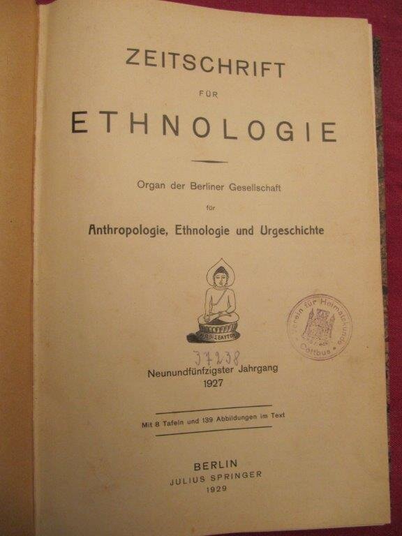 | Berliner Gesellschaft für Anthropologie, Ethnologie und Urgeschichte (Hrsg.). Zeitschrift für Ethnologie. Berlin, Julius Springer, 1929. EA. Mit sehr zahlreichen Fotografien, Zeichnungen und Tafeln. 416 S. Gr. 8°. HLn.-Band mit marmorierten Deckeln. Kanten etwas bestoßen, 2 Stempel auf Vorsatz und Titel; Ansonsten ein sehr gutes Exemplar, vollständig und fest in der Bindung. Umfangreiche Beiträge zu Minang-Kabau / Wanyamwezi/ Baja/ Rama-Indigene von Nikaragua etc…. Bestellnummer: kai2265 Preis: 30 EUR Versandkonditionen |