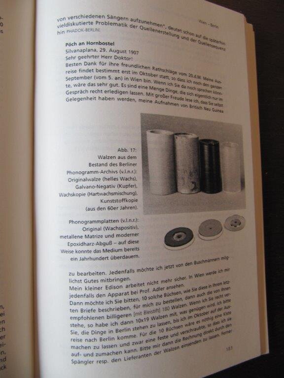 | Stangl, Burkhard. Ethnologie im Ohr. Die Wirkungsgeschichte des Phonographen. Wien, Universitätsverlag, 2000. EA. Mit einigen Fotografien und Zeichnungen. 267 S. Gr. 8°. O-Softcover. Fast neuwertig, nur minimalste Gebrauchsspuren. Es geht – natürlich – viel um die Herren von Hornbostel und Pöch. Sehr seltener Titel. Bestellnummer: kai2331 Preis: 90 EUR Versandkonditionen |