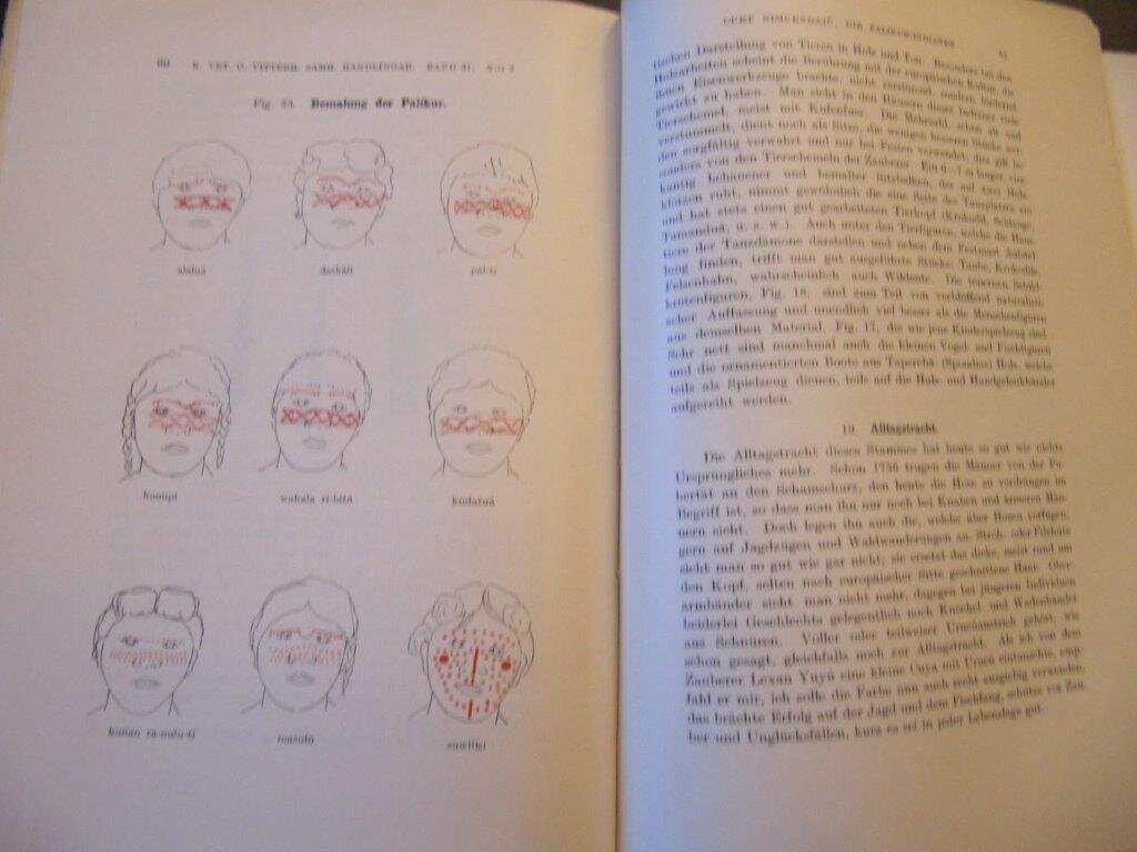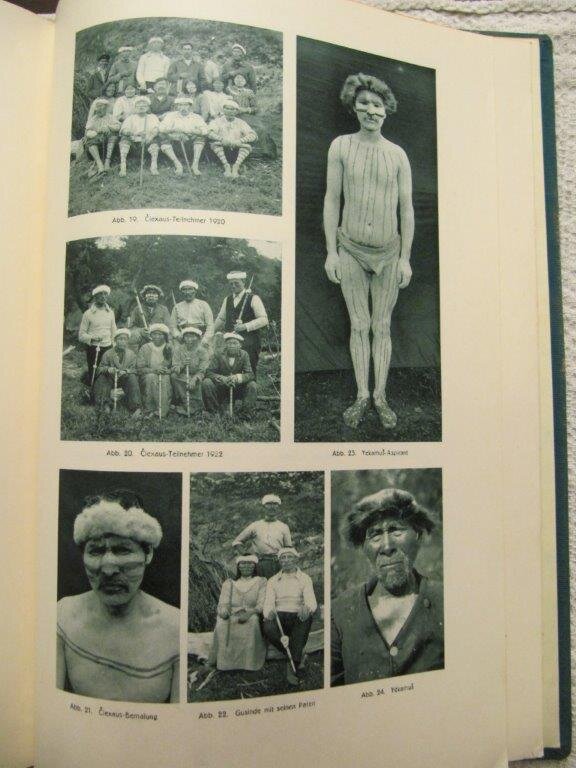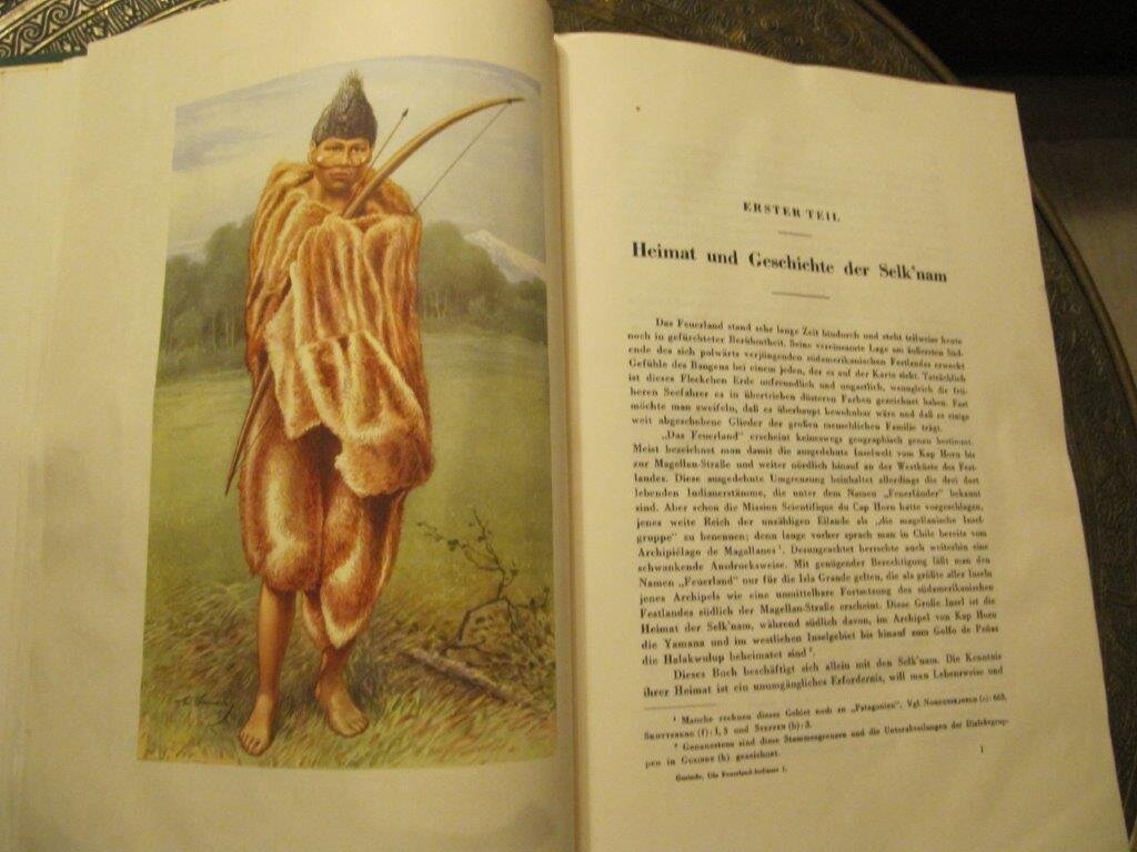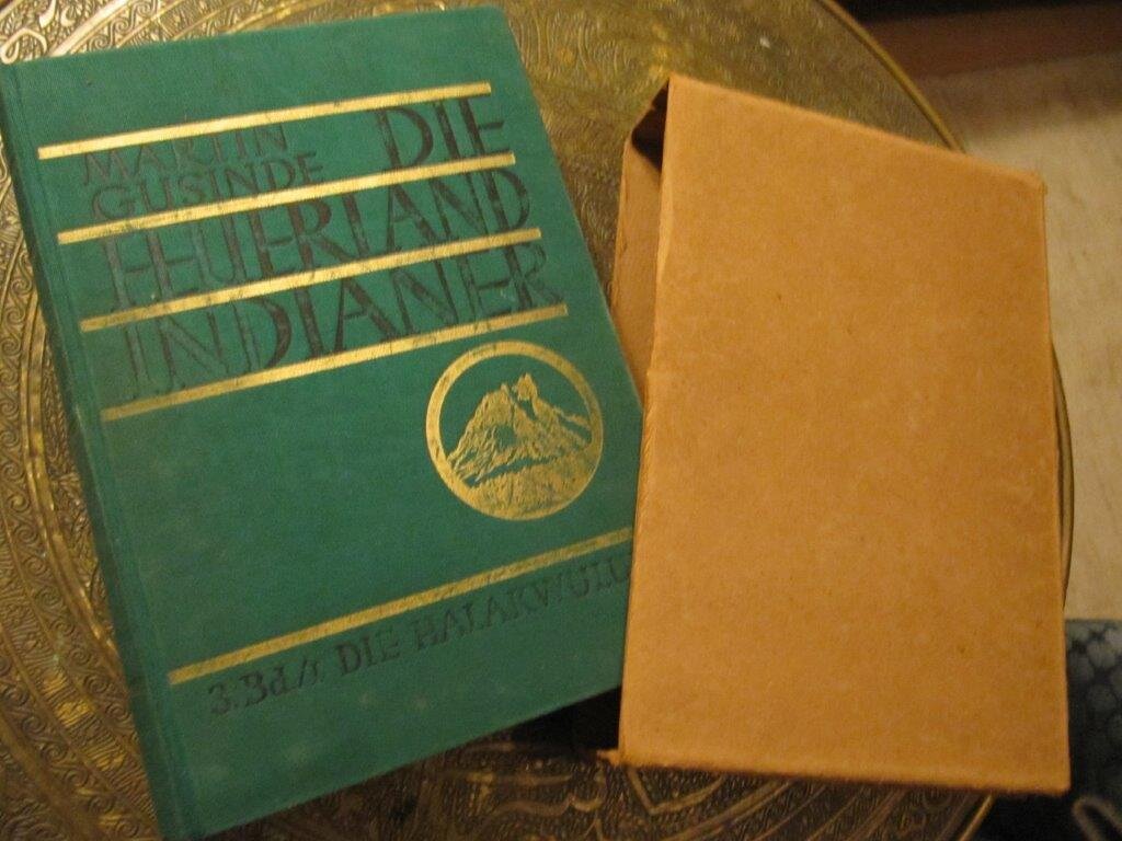 | Gusinde, Martin. Die Feuerland-Indianer. Die Ergebnisse meiner vier Forschungsreisen in den Jahren 1918 bis 1924, unternommen im Auftrage des Ministerio de Instruccion Publica de Chile. Bd. II. Die Yamana. Mödling bei Wien, Verlag der internationalen Zeitschrift "Anthropos", 1937. EA. Mit 8 Tafeln mit Fotografien sowie weiteren 105 Abb. im Text. Von den 4 Farbtafeln lieger 3 leider nur in guter Farbkopie vor (die Originaltafeln waren nicht mit eingebunden, fehlten also von Anfang an - - wie ich es auch schon bei anderen Yamana-Exemplaren genauso vorfand ). Die beiden Karten, die hier leider fehlen, gehören genauso auch zur Ausstattung von Bd. I und von Band 3/II. Deren Fehlen wäre also leicht zu verschmerzen, wenn man einen dieser beiden anderen Bände bereits besitzt. - - ! Leider fehlen auch die Seiten III bis XIV, das sind Titelseite und ein Teil des Inhaltsverzeichnisses. !! Auch in diesem Fall sieht es so aus, als wären sie nie enthalten gewesen. XX, 1499 S. Gr. 8°. Dekorativer OLnBd. mit Goldprägedruck und Kopf-Gelbschnitt.. Einband hier und da leicht fleckig, vor allem am Rücken ist die Schrift teils verblasst oder abgerieben; Schnitt ganz gering schmutzig, einige wenige Seiten zu Beginn und ganz am Ende etwas knitterig . Ansonsten ist das sehr dicke, schwergewichtige und seltene Buch in gutem Zustand, sauber und fest in der Bindung. Ein gutes Exemplar dieses äußerst seltenen Klassikers in der Erstausgabe. Insgesamt erschienen 3 Bände in 4 sowie zwei Tafelbände. Fragen Sie auch nach der Gesamt-Ausgabe, fast immer vorrätig in der Erstausgabe!! Aufgrund der fehlenden Seiten zum absoluten Sonderpreis. Bestellnummer: kai2307 Preis: 290 EUR Versandkonditionen |