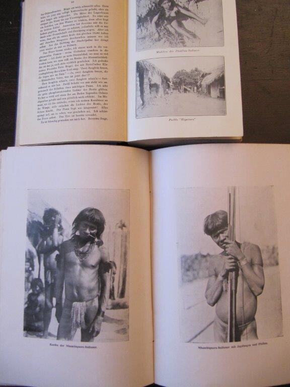 | Rondon, Candido Mariano da Silva. Indios do Brasil. Komplett in 3 Bänden: Band I = Centro, Noroeste e Sul de Mato-Grosso; Band II = Cabeceiras do Rio Xingu, Rios Araguaia e Oiapoque; Band III = Norte do Rio Amazonas. Rio de Janeiro, Ministerio da Agricultura, 1946 / 1953 / 1953. EA. Mit insgesamt 1515 fotogr. Abb. auf Tafeln. 366 S. / 363 S. / 370 S. Folio- Format 34x24cm. Original- GanzLeinen-Bände mit Deckelillustrationen. Alle drei Bände haben fleckige und teils stark nachgedunkelte Einbände; alle drei sind vom Buchbinder ausgebessert worden, haben teils stabilisierte Rücken, neue Vorsätze bzw. sind neu abgeleimt worden; Innen wurden einige wenige Seiten an den Rändern mit Japanpapier ausgebessert. Insgesamt sind diese empfindlichen Leinenbände mit dem brüchigen Papier in stabilem Zustand, innen sauber, vollständig und fest in der Bindung. Die wunderbaren, großformatigen Fototafelbände des brasilianischen Nationalhelden Rondon sind äußerst selten. Rondon, selber teils indigener Abstammung, war u.a. Gründer der Indianer-Schutzorganisation FUNAI und des Xingu-Nationalparks, der Bundesstaat Rondonia ist nach ihm benannt. Diese drei Fototafelbände mit ihren mehr als 1500 Fotografien werden komplett äußerst selten angeboten, gerade der erste Band ist fast unauffindbar. Sehr zahlreiche Fotografien in der Folge von Erst-Kontakten. Bestellnummer: kai1166 Preis: 290 EUR Versandkonditionen |