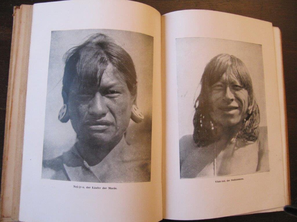| Koch-Grünberg, Dr. Th. Zwei Jahre unter den Indianern. Reisen in Nordwest-Brasilien 1903/1905. 2 Bände. Berlin, Wasmuth, 1909/ 1910. EA. Mit zusammen 445 fotogr. Abb., teils ganzseitig, teils im Text; weiterhin 22 fotogr. Tafeln in Lichtdruck auf starkem Karton sowie zusammen 5 Karten, 3 davon doppelseitig und mehrfarbig. Beide Bände mit Frontispiez. IV, 355 S. (plus 4 S. Inh.-Verz.unpag.) / 3Bl., 413 S. 4°. Beide Bände Original-Ganzleinenbände; Kunstdruck-Papier mit ausgezeichneter Foto-Wiedergabe. Beide Einbände relativ stark angeschmutzt, Kanten und Ecken leicht bestoßen, Kapitale teils ganz leicht angefranst; ansonsten jedoch innen ausgezeichneter Zustand, sauber, vollständig, keine Eintragungen, keine Bibl.-Exemplare. Zwei bis auf die etwas schmutzigen Einbände sehr gut erhaltene Exemplare dieser seltenen, zweibändigen Erstausgabe. Es handelt sich um Exemplare der ersten Druckcharge, die noch nicht bei Strecker&Schröder aus Stuttgart verlegt wurden (und auch einen entsprechenden Aufdruck auf dem Einband-Deckel bzw. dem Titelblatt erhielten), sondern tatsächlich bei Wasmuth in Berlin. Koch-Grünberg war in der Nachfolgeschaft von Ehrenreich und von den Steinen einer der Haupt-'verantwortlichen' für den hervorragenden Ruf der deutschen Brasilien-Ethnologie. Viele Jahre später folgte sein ebenfalls ausgezeichnetes 5-bändiges Werk 'Vom Roroima zum Orinoko'. Fragen Sie auch danach beim Antiquariat KAIAPO. Im Wasmuth-Verlag hatte er schon zuvor das extrem seltene Foto-Tafelwerk 'Indianertypen aus dem Amazonasgebiet' herausgegeben (1906-1911). Bestellnummer: kai1791 Preis: 290 EUR Versandkonditionen |