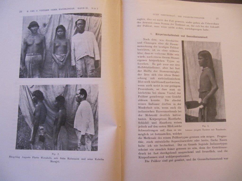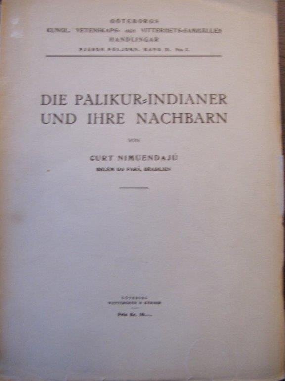 | Nimuendaju, Curt. Die Palikur-Indianer und ihre Nachbarn. Göteborg, Elanders Boktryckeri, 1926. EA. Mit 44 fotogr. Abb. im Text und einer mehrfach gefalteten Karte. 144 S. Gr. 8°. Göteborgs Kungl. Vetenskaps- och Vitterhets-Samhälles - Handlingar - Fjärde Följden. Band 31. No 2. OBr.-Band. Broschur-Umschlag teils mit kleinen Einrissen und Fehlstellen, teils etwas nachgedunkelt. Innen ausgezeichnet. Seltenes, frühes Werk des bekannten Erforschers der Ethnien Brasiliens. Curt Nimuendaju ist eine Rarität unter Ethnologen: Er machte nicht hier und da mal Feldforschung, lebte mal einen Monat oder ein Jahr unter den Indigenen, sondern er lebte fast sein ganzes Leben als Erwachsener mit und unter den Ureinwohnern des nordöstlichen Amazonasgebietes. Auch seinen Namen hat er von ihnen bekommen. Gleichzeitig war er Forscher und Wissenschaftler. Dementsprechend einzigartig fundiert ist alles, was er veröffentlichte.Mit einem Vorwort von Erland Nordenskiöld. Bestellnummer: kai2319 Preis: 65 EUR Versandkonditionen |