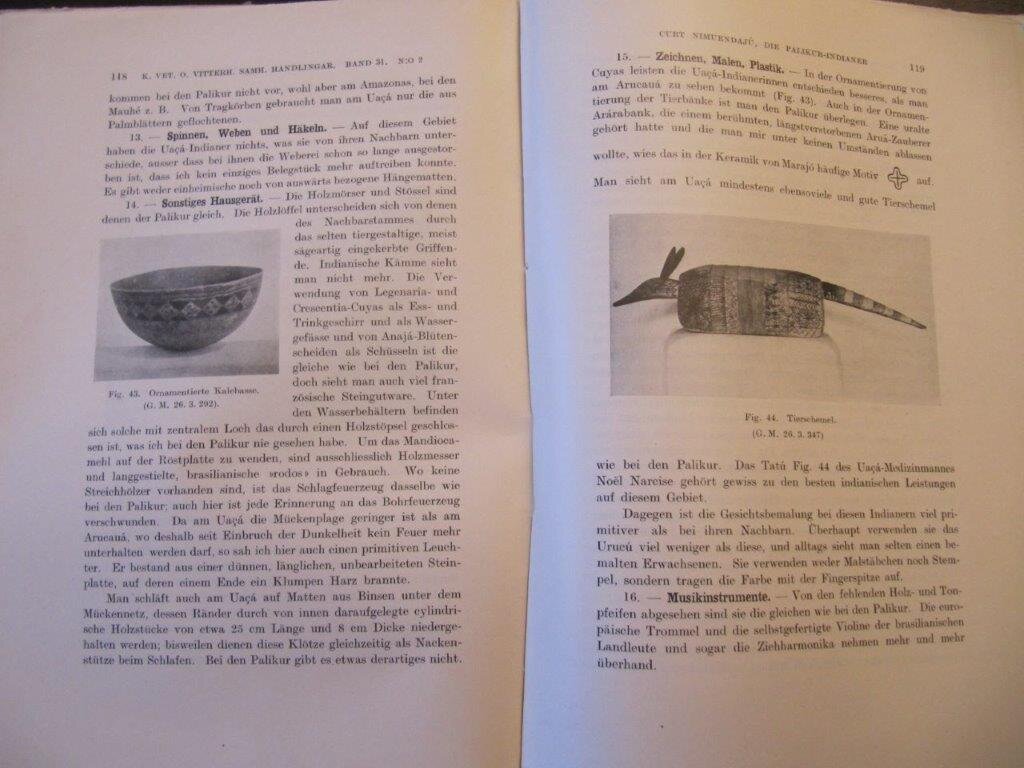 | Ehrenreich, Dr. Paul. Beiträge zur Völkerkunde Brasiliens. Berlin, Spemann, 1891. EA. Mit 15 Tafeln mit sehr zahlreichen fotogr. Abb. , eine Farbtafel (Zeichnungen) sowie weitere 48 Abb. im Text. 80 S. plus unpag. Tafelteil. Folio-Format 36x25,5cm. Veröffentlichungen aus dem königlichen Museum für Völkerkunde, II. Band,- 1./2. Heft. Original-Broschur. Broschurumschlag mit kl. Einrissen im Randbereich sowie Fehlstellen (vor allem auf der Rückseite); die Klammern sind etwas rostig, eine Lage ist lose, eine fast lose und das ganze Buch ist zwischen Text- und Tafelteil aufgebrochen. Das Gute: Alle Text- und Tafelseiten sind völlig sauber, ohne Stempel oder sonstige Eintragungen und vollständig. Erste massgebliche größere Publikation des bekannten Anthropologen und Ethnologen, basierend auf Material der zweiten deutschen Xingu-Expedition unter 'Karl von den Steinen', an der Ehrenreich teilgenommen hatte. Ausgezeichnete Foto-Tafeln, sehr selten angeboten. Bestellnummer: kai1798 Preis: 440 EUR Versandkonditionen |