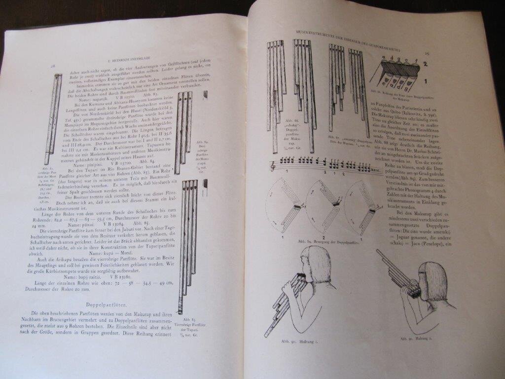 | Snethlage, E.Heinrich. Musikinstrumente der Indianer des Guaporegebietes. Berlin, Verlag von D. Reimer, 1939. EA. Mit 103 Abbildungen (das sind Fotografien und Zeichnungen). 38 S. 4°. Baessler-Archiv. Beiträge zur Völkerkunde. Beiheft X. Obr. Fast wie neu, lediglich leichte Knickspuren im Inneren. Ergebnisse der Guapore-Expedition 1933-1934. Bestellnummer: kai2333 Preis: 85 EUR Versandkonditionen |